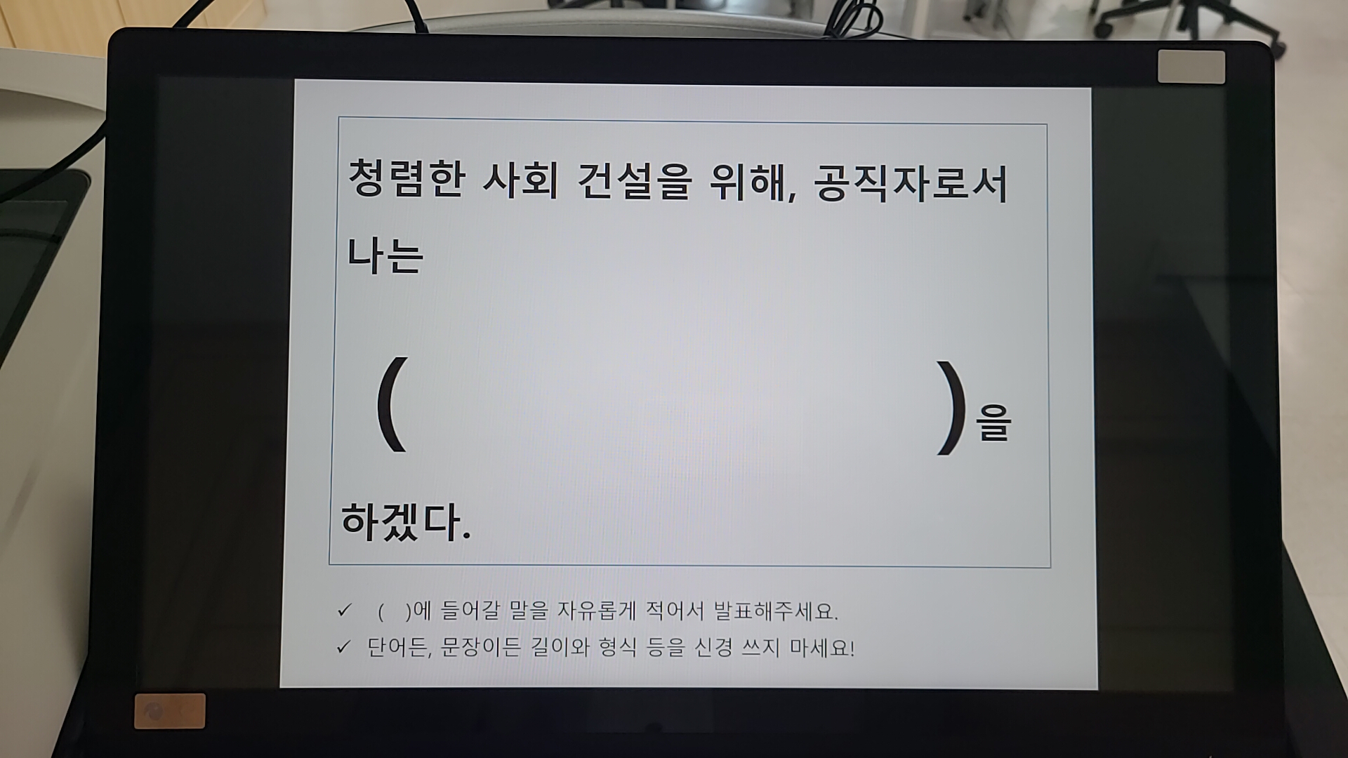 청렴한 사회 건설을 위해, 공직자로서 나는 ㅇㅇㅇ 을 하겠다.